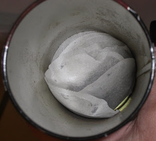 | Inside of the English breakfast tin. Love round tea bags. |
