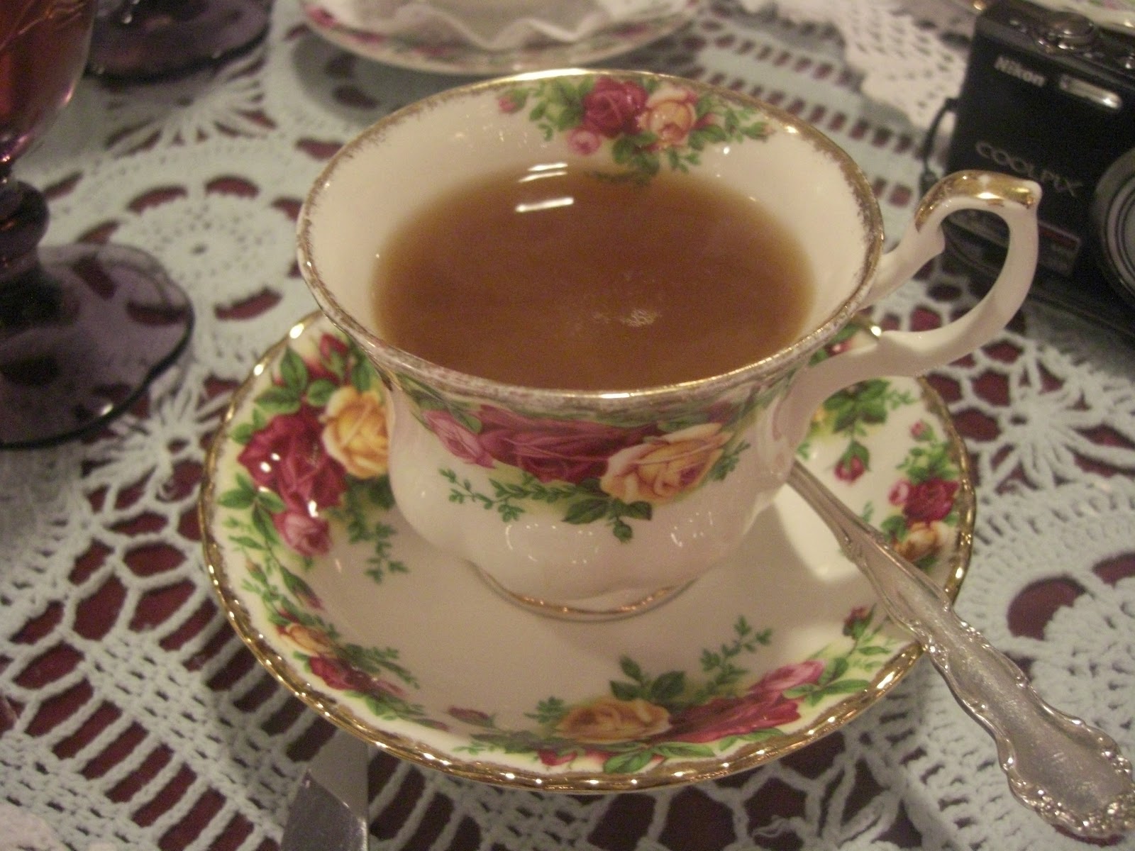 | My tea. I normally don't like it with milk but I wanted the full experience. ;P |