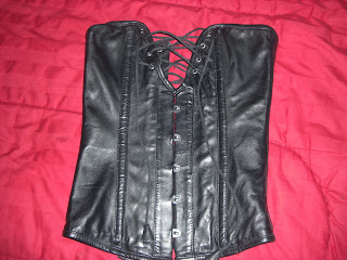 Leather corset. Real leather, real boning, lots of cleavage. This is very heavy and must be worn for at least 10 minutes for the leather to soften with your body heat before cinching. Sz 22. Worn once for a photo shoot and a 2nd time for some sexy pics for H. ;) $85 shipped. Here's what it looks like on.