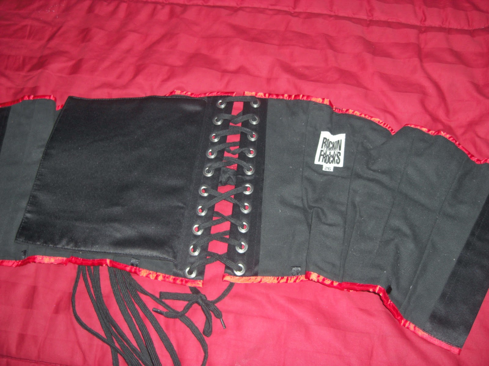 Satin waist cincher Sz 26. I bought the wrong size and never returned it. I wore it once but never again. This is a real corset with real boning, not something you'd find at Charlotte Russe! $75 shipped.